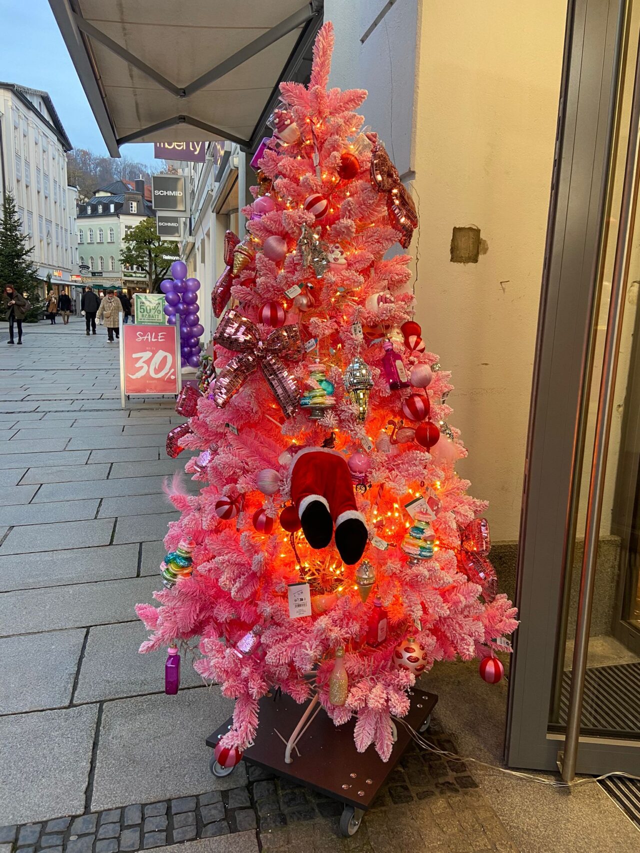 Gerade war der Sommer vorbei, da winkten im September schon die ersten Schokoweihnachtsmänner aus dem Supermarktregal zu, in die Schaufenster der Krimskramsläden schlichen sich nach und nach Christbraumkugeln in jeder erdenklichen Form und Farbe und im November hatten sich alle möglichen Dekoartikel für die Weihnachtszeit zusammengefunden. Von knallpinken Plastikbäumen und elektrisch wackelnden Wichteln über Weihnachtsmänner, die an der Hausfassade hochklettern ist alles dabei, was man sich nur vorstellen kann.